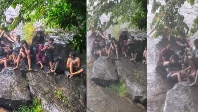 വെള്ളച്ചാട്ടം കണ്ടു നിൽക്കെ മലവെള്ളപാച്ചിൽ; വിനോദ സഞ്ചാരികള് പാറക്കെട്ടിൽ കുടുങ്ങി, രക്ഷകരായി അഗ്നിശമന സേന