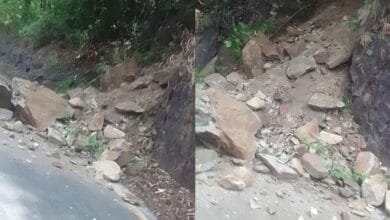 താമരശ്ശേരി ചുരത്തിൽ ഒമ്പതാം വളവിന് താഴെ കൂറ്റൻ പാറ അടർന്ന് റോഡിലേക്ക് വീണു, വൻ അപകടമൊഴിവായത് തലനാരിഴക്ക്