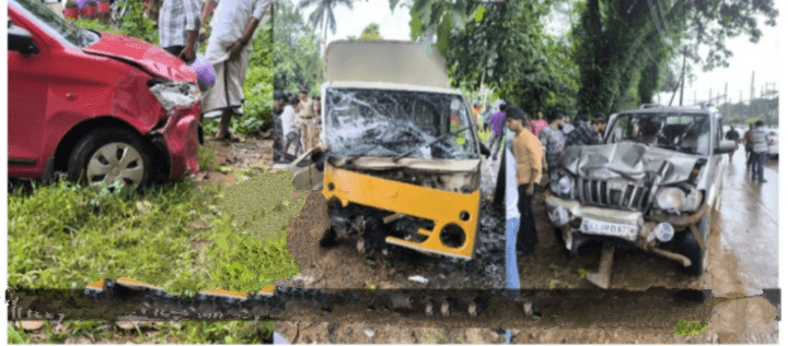 കാറും അപകടത്തിൽപ്പെട്ടു.അപകടത്തിൽ മൂന്ന് പേർക്ക് പരിക്കേറ്റു.