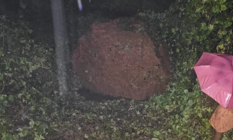ചാവശേരി പഴയ പോസ്റ്റാഫീസ് ഗണപതി ക്ഷേത്രത്തിന് സമീപത്തെ റബ്ബർ തോട്ടത്തിന് മുകളിലുള്ള കൂറ്റൻ കല്ലാണ് മഴയിൽ ഇളകി താഴേക്ക് പതിച്ചത്. കഴിഞ്ഞ ദിവസം രാത്രിയിലായിരുന്നു സംഭവം. റബ്ബർ വെട്ടുക്കാരനാണ് കാടുപിടിച്ച് കിടക്കുന്ന സ്ഥലത്ത് കൂറ്റൻ കല്ല് വീണ നിലയിൽ കണ്ടത്. ഇയാൾ നാട്ടുകാരെ വിവരം അറിയിച്ചതിനാൽ മട്ടന്നൂരിൽ നിന്ന് അഗ്നിശമന വിഭാഗവും പോലീസും സ്ഥലത്തെത്തി പരിശോധന നടത്തി. വീണ കല്ലിന് പുറമെ മറ്റൊരു കല്ലും കൂടി വീഴാൻ കിടക്കുന്നതിനാൽ കുന്നിന് താഴെയുള്ള ആറ് വീട്ടുക്കാരോട് മാറി താമസിപ്പിക്കാൻ നിർദ്ദേശം നൽകി. ഇരിട്ടി നഗരസഭ ചെയർപേഴ്സൺ കെ. ശ്രീലത, പൊതുമരാമത്ത് സ്റ്റാൻ്റിംഗ് കമ്മിറ്റി ചെയർമാൻ കെ.സുരേഷ്, കൗൺസിലർ സി.ബിന്ദു എന്നിവർ സ്ഥലത്തെത്തി വീടുകളിൽ കയറി മാറി താമസിക്കാൻ പറയുകയായിരുന്നു. ആറ് കുടുംബങ്ങൾ ബന്ധുവീടുകളിലേക്ക് മാറ്റി. അപകടാവസ്ഥയിലായ കല്ല് പൊട്ടിച്ചു മാറ്റാൻ നിർദേശം നൽകിയതായി ചെയർപേഴ്സൺ പറഞ്ഞു.