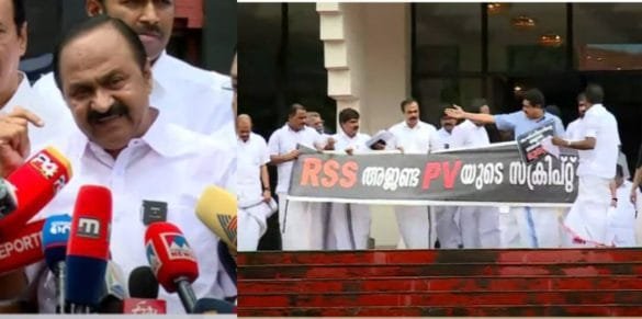 തിരുവനന്തപുരം: മുഖ്യമന്ത്രിയുടെയും സ്പീക്കറുടെയും ഓഫീസ് കേന്ദ്രീകരിച്ച് ഗൂഢാലോചന നടന്നെന്ന് പ്രതിപക്ഷ നേതാവ് വി ഡി സതീശൻ. വിവാദ ചോദ്യങ്ങൾ സഭയിൽ എത്താതിരിക്കാൻ ഇടപെട്ടെന്നാണ് വിമർശനം. മുഖ്യമന്ത്രിയുടെ മലപ്പുറം പരാമർശം മനപൂർവ്വമാണെന്നും സതീശൻ ആരോപിച്ചു. ‘ആർഎസ്എസ് അജണ്ട പിവിയുടെ സ്ക്രിപ്റ്റ്’ എന്ന് എഴുതിയ ബാനറുമായി പ്രതിപക്ഷം സഭയുടെ അകത്തും പുറത്തും പ്രതിഷേധിച്ചു. പ്രതിപക്ഷത്തിന്റെ പ്രതിഷേധം ഒഴിവാക്കിയ സഭാ ടിവി വി ഡി സതീശന്റെ പ്രസംഗ ഭാഗവും വെട്ടി.