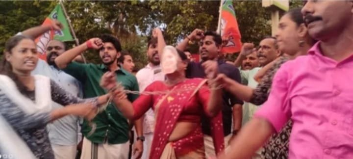 കണ്ണൂർ എഡിഎം ആയിരുന്ന കെ. നവീൻ ബാബുവിൻ്റെ മരണത്തിൽ ആത്മഹത്യാ പ്രേരണാകുറ്റം ചുമത്തപ്പെട്ട മുൻ കണ്ണൂർ ജില്ലാ പഞ്ചായത്ത് പ്രസിഡൻ്റ് പി.പി. ദിവ്യയെ അറസ്റ്റ് ചെയ്യാൻ പോലീസ് വിമുഖത കാട്ടുന്നതിൽ പ്രതിഷേധിച്ച് യുവമോർച്ചയുടെ നേതൃത്വത്തിൽ ദിവ്യയെ പ്രതീകാത്മകമായി അറസ്റ്റ് ചെയ്ത് യുവമോർച്ച. കണ്ണൂർ ടൗൺ പോലീസ് സ്റ്റേഷന് മുന്നിലാണ് യുവമോർച്ച വേറിട്ട പ്രതിഷേധം സംഘടിപ്പിച്ചത്. കണ്ണൂർ പഴയ ബസ്സ്റ്റാൻഡ് പരിസരത്ത് നിന്നാരംഭിച്ച പ്രതിഷേധ റിലിയിൽ നൂറുകണക്കിന് പ്രവർത്തകർ പങ്കെടുത്തു.