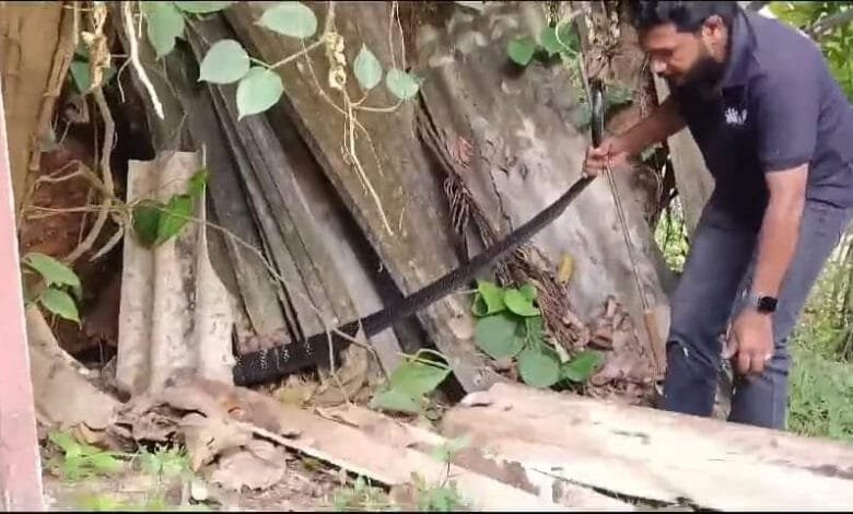 ഇരിട്ടി: അയ്യൻ കുന്ന് പഞ്ചായത്തിലെ രണ്ടാംകടവ് തുടിമരത്തെ പുത്തൻവീട്ടിൽ സുനിലിന്റെ വീട്ടുവളപ്പിൽ നിന്നും രാജവെമ്പാലയെ പിടികൂടി. വീട്ടുകാർ വിവരമറിയിച്ചതിനെ തുടർന്ന് മാർക്ക് പ്രവർത്തകനും വനംവകുപ്പ് താൽക്കാലിക ജീവനക്കാരനുമായ ഫൈസൽ വിളക്കോടും മിറാജ് പേരാവൂർ, സാജിദ് ആറളം, അജിൽ കുമാർ, ബീറ്റ് ഫോറസ്റ്റ് ഓഫീസർമാരായ കൃഷ്ണശ്രീ, രാഹുൽ എന്നിവരും ചേർന്നാണ് പാമ്പിനെ പിടികൂടി വനത്തിൽ വിട്ടത്. ഫൈസൽ വിളക്കോട് പിടികൂടുന്ന 68 മത്തെ രാജവംബാലയാണിത്.