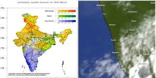 മാർച്ച് മാസത്തിൽ കേരളത്തിൽ സാധാരണയിൽ കൂടുതൽ മഴ ലഭിക്കാൻ സാധ്യതയെന്നാണ് പ്രവചനം. കാലാവസ്ഥ വകുപ്പിന്റെ അറിയിപ്പിനൊപ്പമുള്ള ചിത്രത്തിൽ മാർച്ച് മാസം രാജ്യത്ത് ഏറ്റവും മഴ ലഭിക്കാനുള്ള സംസ്ഥാനങ്ങളുടെ കൂട്ടത്തിലാണ് കേരളമെന്നും കാണാം.