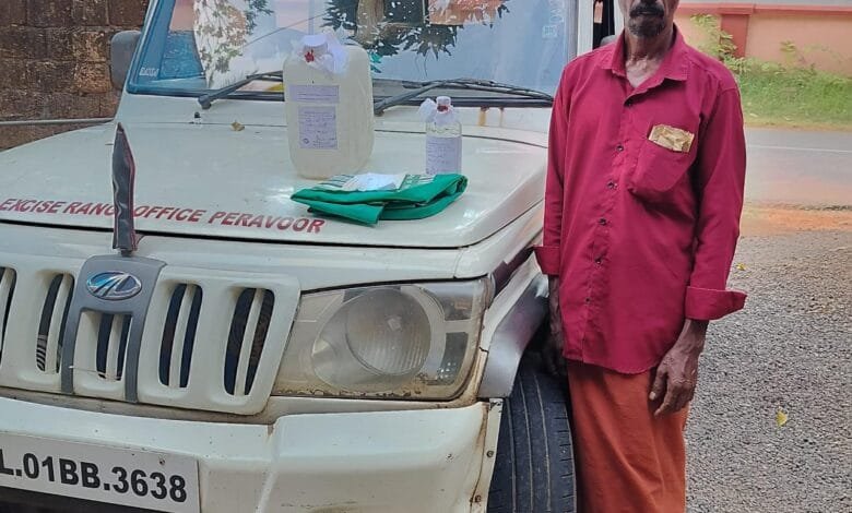 പേരാവൂർ: 10 ലിറ്റർ ചാരായവുമായി പാൽചുരം പുതിയങ്ങാടി സ്വദേശിയെ പേരാവൂർ എക്സൈസ് പിടികൂടി. അസി.എക്സൈസ് ഇൻസ്പെക്ടർ എൻ പത്മരാജനും സംഘവും ഇന്ന് രാവിലെ നടത്തിയ പരിശോധനയിലാണ് 10 ലിറ്റർ ചാരായവുമായി