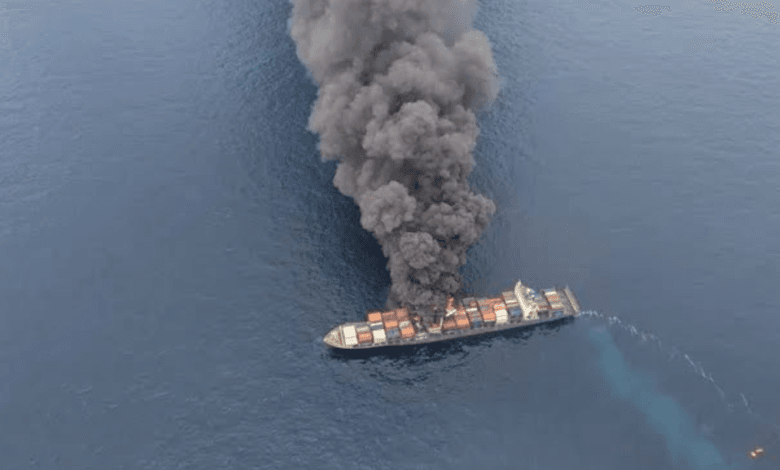കേരളാ തീരത്ത് കൊളംബോ മുംബൈ ചരക്ക് കപ്പലിൽ തീപ്പിടുത്തം. 50 കണ്ടെയ്നര് കേരള തീരത്ത് കടലിൽ വീണു