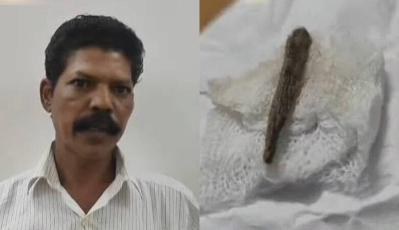 കഴിഞ്ഞ ജനുവരിയിലാണ് കാലിന് പരുക്കേറ്റ് പങ്ങാരപ്പള്ളി സ്വദേശി ചന്ദ്രന്‍ ചേലക്കര താലൂക്ക് ആശുപത്രിയില്‍ ചികിത്സ തേടിയത്. കാലില്‍ മരക്കമ്പ് തറച്ചുകയറിയെന്ന് ചന്ദ്രന്‍ ആരോഗ്യപ്രവര്‍ത്തകരെ അറിയിച്ചിരുന്നു. മരക്കമ്പ് തറച്ച് മുറിവുണ്ടായെന്ന് മാത്രം പറഞ്ഞ് ആശുപത്രി അധികൃതര്‍ അത് തുന്നിക്കെട്ടി വിടുകയായിരുന്നു. പിന്നീട് കടുത്ത വേദനയെ തുടര്‍ന്ന് കഴിഞ്ഞ ദിവസം ചന്ദ്രന്‍ വടക്കാഞ്ചേരി ജില്ലാ ആശുപത്രിയിലെത്തി. മുറിവേറ്റ ഭാഗം നന്നായി മുഴച്ചുവന്നിരുന്നു.ഉടന്‍ തന്നെ സര്‍ജറി വേണമെന്ന് വടക്കാഞ്ചേരി ആശുപത്രിയിലെ ഡോക്ടര്‍മാര്‍ അറിയിച്ചു. തുടര്‍ന്ന് ഡോക്ടേഴ്‌സ് ചന്ദ്രന്റെ കാലിന്റെ മുഴ കീറിയപ്പോള്‍ അതില്‍ നിന്ന് രണ്ടിഞ്ചോളം വലിപ്പമുള്ള മരക്കഷ്ണം കണ്ടെത്തുകയായിരുന്നു. കൂലിപ്പണിക്കാരനായ ചന്ദ്രന് കാലുവേദന മൂലം കഴിഞ്ഞ അഞ്ചുമാസക്കാലത്ത് കുറേയേറെ ദിവസം പണിക്ക് പോലും പോകാന്‍ സാധിച്ചിരുന്നില്ല.