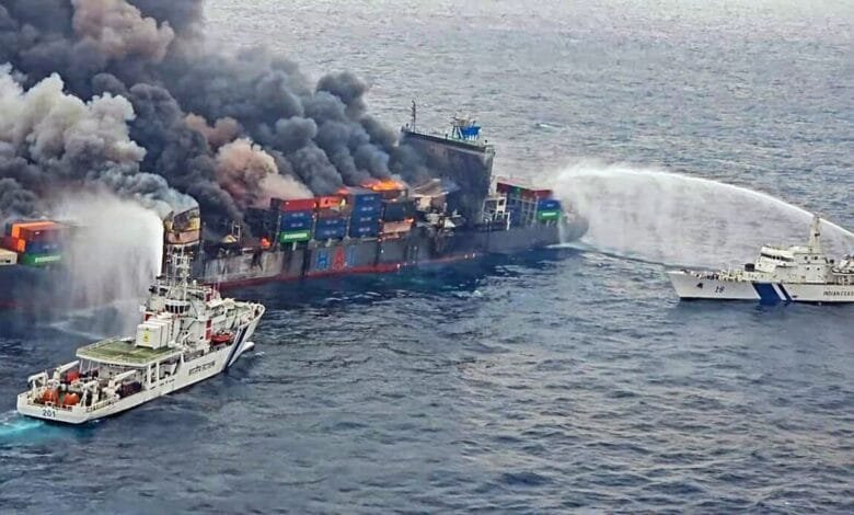 അന്തരീക്ഷമാകെ മൂടി കറുത്ത പുക, വാൻഹായ് കപ്പലിലെ തീ ഒരു ദിവസത്തിലേറെ നീണ്ട ശ്രമത്തിനൊടുവിൽ അണച്ചു