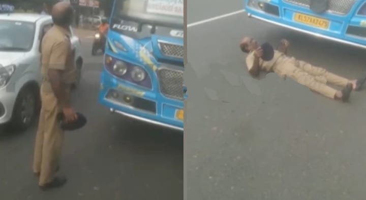 ‘എന്റെ നെഞ്ചത്തുകൂടി കയറ്റ്, അല്ലാതെ ഈ വണ്ടി പോകില്ല’; വിദ്യാർഥികളെ കയറ്റാതെ പോയ ബസിന് മുന്നിൽ കിടന്ന് ഹോം ഗാർഡ്