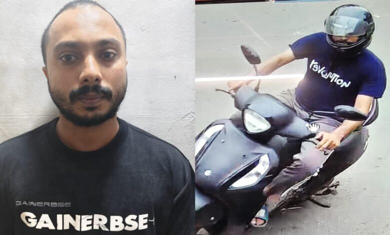 ഭാര്യയുടെ ഫസീനോ സ്കൂട്ടറിന്റെ നമ്പർ പ്ലേറ്റ് ഇളക്കി, 1 മണിക്കൂറിൽ തലശ്ശേരിയിൽ കറങ്ങി പൊട്ടിച്ചത് 3 സ്വർണ്ണമാല; പ്രതി പിടിയിൽ