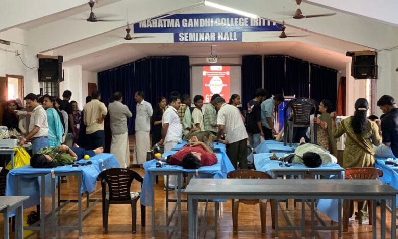 ഇരിട്ടി: ഇരിട്ടി മഹാത്മാഗാന്ധി കോളേജ് എൻഎസ് എസ് യൂണിറ്റുകളുടേയും, കണ്ണൂർ ജില്ലാ ജനറൽ ആശുപത്രി, ബ്ലഡ് ഡോണേഴ്സ് യൂത്ത് കൂട്ടായ്മ , കണ്ണൂർ എന്നിവരുടേയും സംയുക്താഭിമുഖ്യത്തിൽ ഇരിട്ടി എംജി കോളേജിൽ രക്തദാന ക്യാംപ് നടത്തി. കോളേജിലെ അറുപതോളം വിദ്യാർത്ഥികൾ രക്തദാനം ചെയ്തു. കണ്ണൂർ ജില്ലാ ആശുപത്രിയിലെ ഡോ. നൂഹ ബഷീർ, പിആർഒ സി . പ്രമോദ് കുമാർ, എംജി കോളേജ് പ്രിൻസിപ്പൾ ഇൻ ചാർജജ് സന്ധ്യ.സി.വി, എൻ എസ് എസ് പ്രോഗ്രാം ഓഫീസർമാരായ അനുപമ. എം, ഹസീന. സി, കോളേജ് സൂപ്രണ്ട് മിനി ജോൺ എം. ജെ, ബ്ലഡ് ഡോണേഴ്സ് യൂത്ത് കൂട്ടായ്മ ഭാരവാഹികളായ ചന്ദ്രൻ, ധനേഷ് വി.സി, ഉഷ. എ , ഷിധിൻ എന്നിവർ ക്യാംപിന് നേതൃത്വം നൽകി.