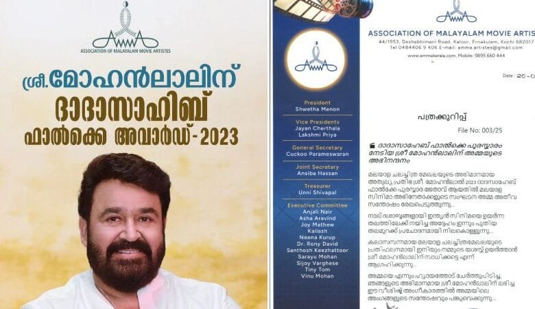 ‘അഭിമാനം.. സന്തോഷം’; മോഹന്ലാലിന്റെ ദാദാ സാഹേബ് ഫാല്ക്കേ പുരസ്കാര നേട്ടത്തില് ‘ അമ്മ ‘ സംഘടന