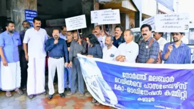 റെയിൽ യാത്രക്കാർ കണ്ണൂർ സ്റ്റേഷനിൽ ധർണ്ണ നടത്തി.