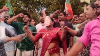 നവീൻ ബാബുവിന്റെ ദുരൂഹ മരണം; പി.പി. ദിവ്യയെ പ്രതീകാത്മകമായി അറസ്റ്റ് ചെയ്ത് യുവമോർച്ച