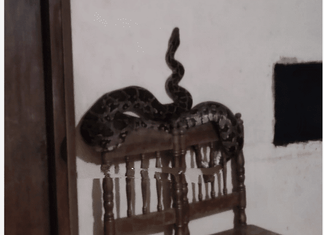 ഇന്നലെ രാത്രി 8 മണിയോടെയാണ് പത്തു വയസുകാരി നഷ്ഫ പഠിക്കാനിരുന്നപ്പോളാണ് സമയത്താണ് കസേരയില് പാമ്പിനെ കണ്ടത്. വിദ്യാര്ത്ഥിനി ഭയന്ന് നിലവിളിച്ചതോടെ പാമ്പിനെ കണ്ട വീട്ടുകാരും ഞ്ഞെട്ടി.